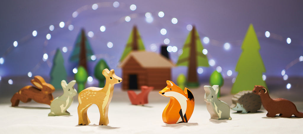 Their collection includes animal toys, children's furniture, and dolls house worlds, all made with reclaimed rubber wood.