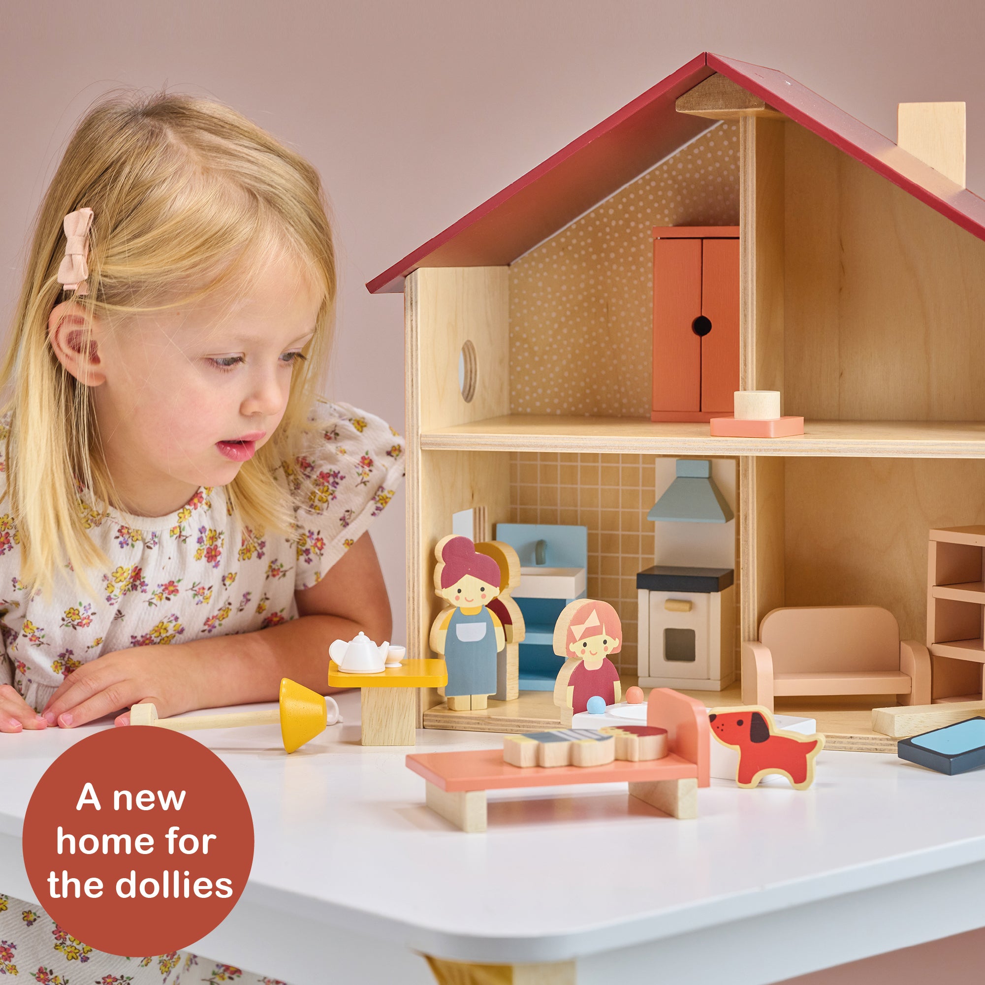 A doll family with dog by Mentari, ready to move into your new doll's house. Mum, Dad, Boy and little girl - we have also included their pet puppy!