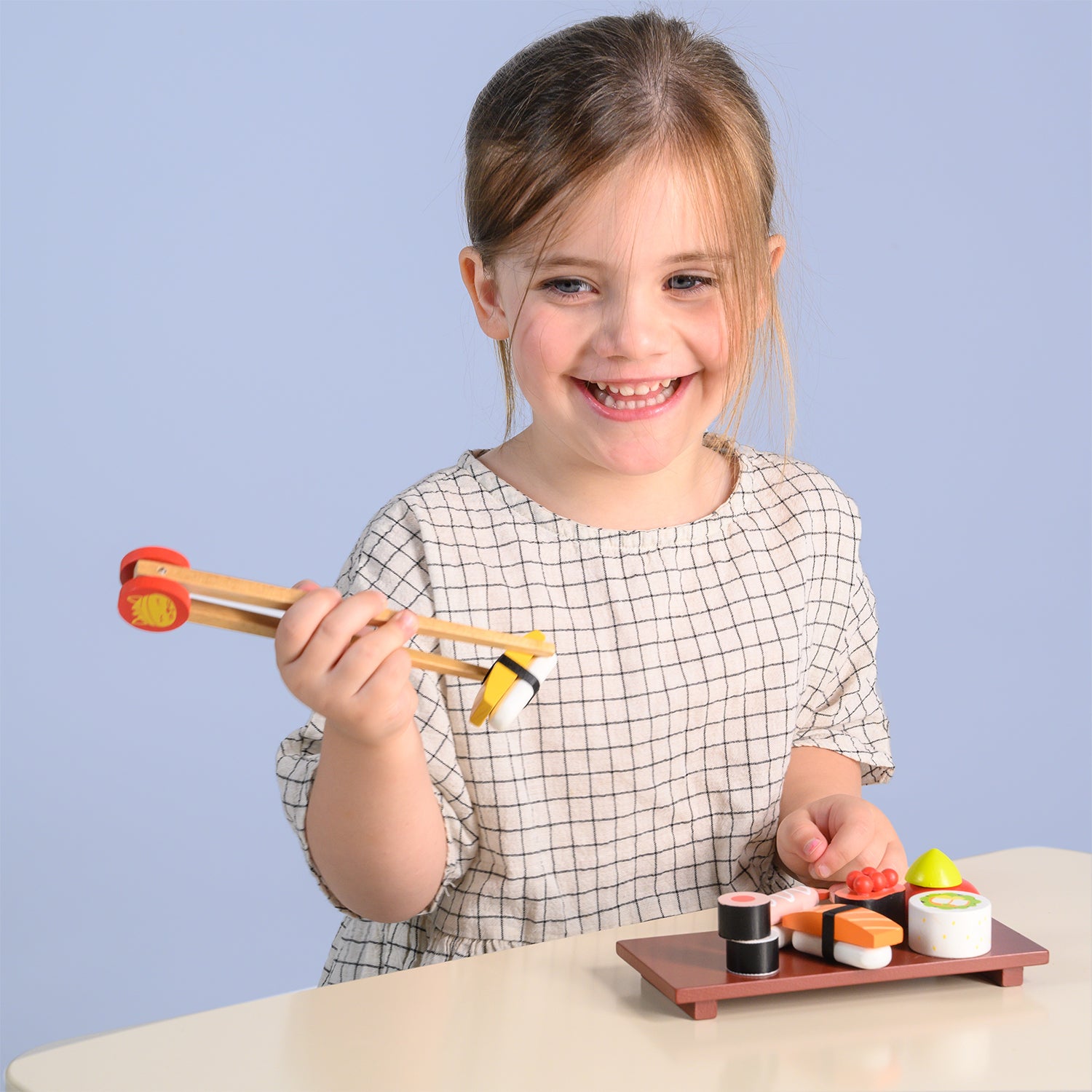 This wooden toy sushi set is perfect for children to engage in pretend play. Made with high-quality materials, this set promotes hand-eye coordination and imaginative play. Provides hours of fun while developing essential skills. Add to your pretend play kitchen set up.